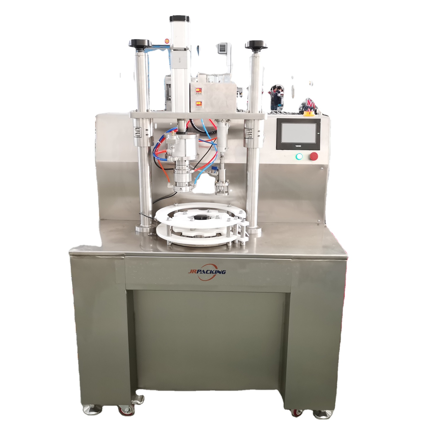 This BOV machine is the newest design in China, R&D by Jrpacking. It has the advantages: 1. Its crimping is serve motor control, it only needs 1s to finish crimping, really fast speed it is. The crimping of traditional machine is pneumatic control, it needs at least 3-4 seconds to finish crimping on one can. 2. Fast crimping speed helps to improve production capacity a lot. When filling 100-200ml liquid, its capacity reaches about 35 bottles per minute. A best Choice for small volume production. 3. The crimping precision has reached a qualitative leap. The defected ratio is as low as 1 in 10,000. And low noise in crimping, compared with the traditional BOV machine, the nose could be reduced 50%.